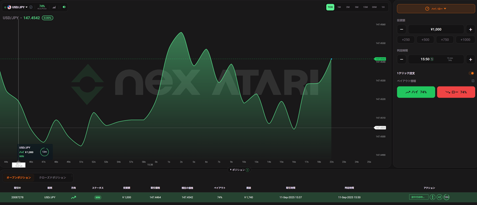 途中売却はハイ/ロー取引のみ可能になります。